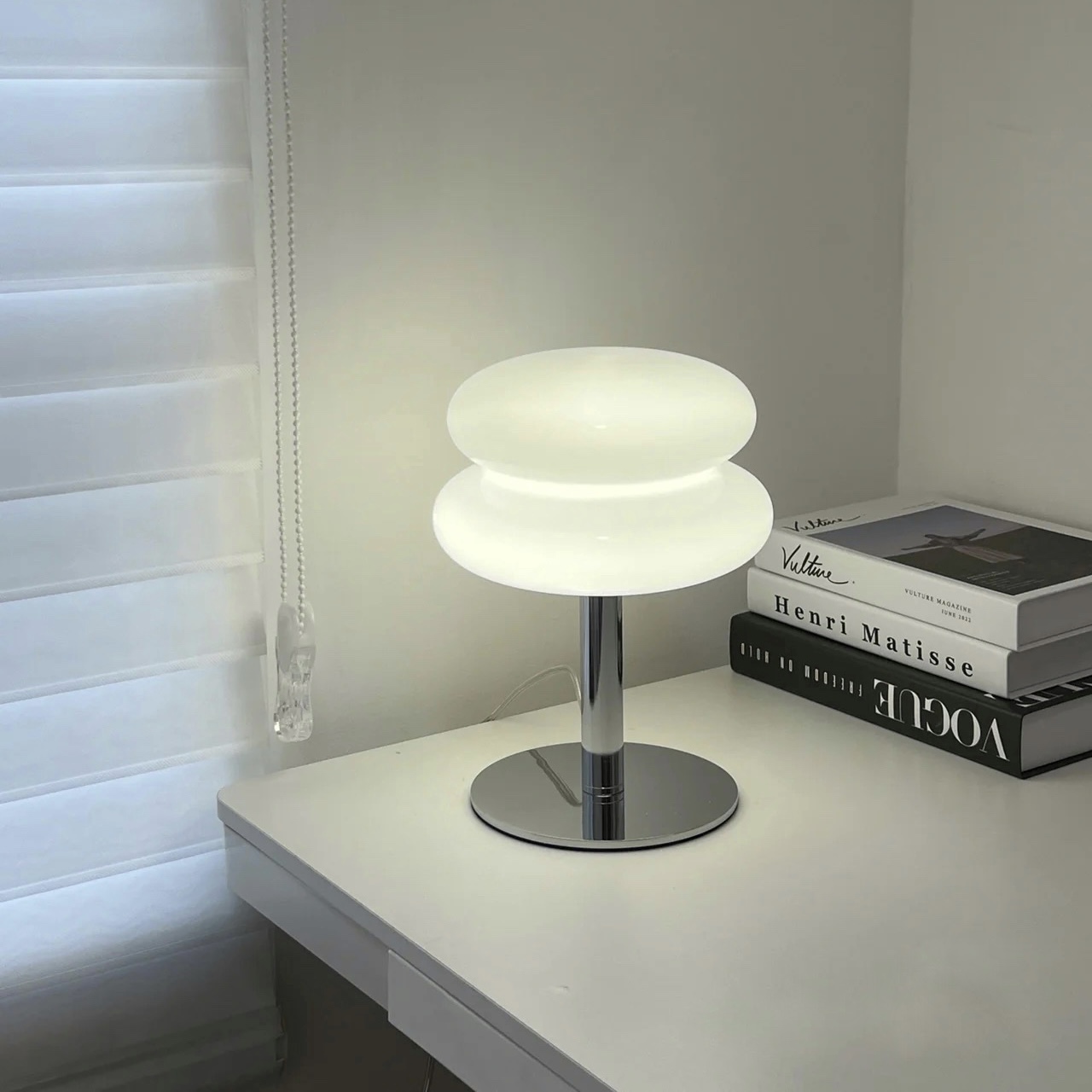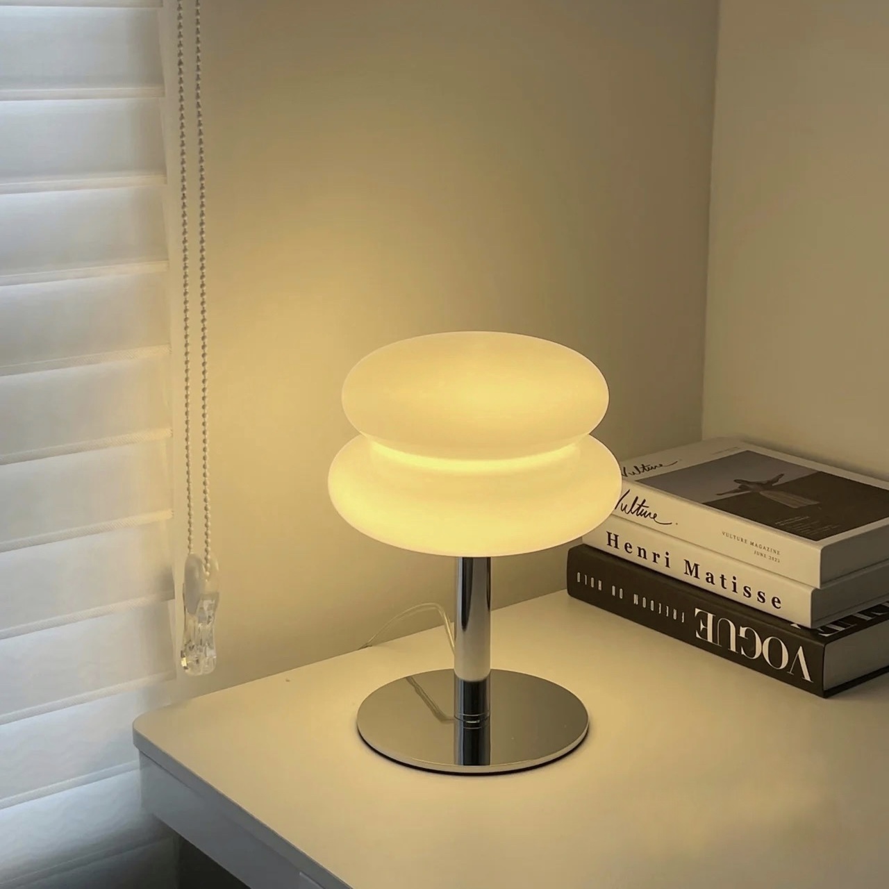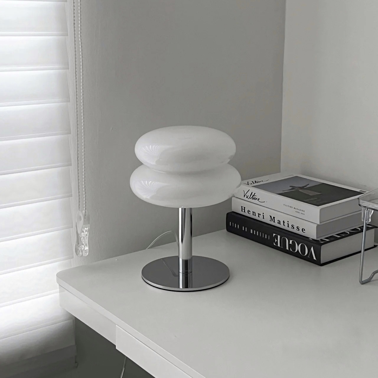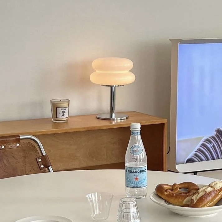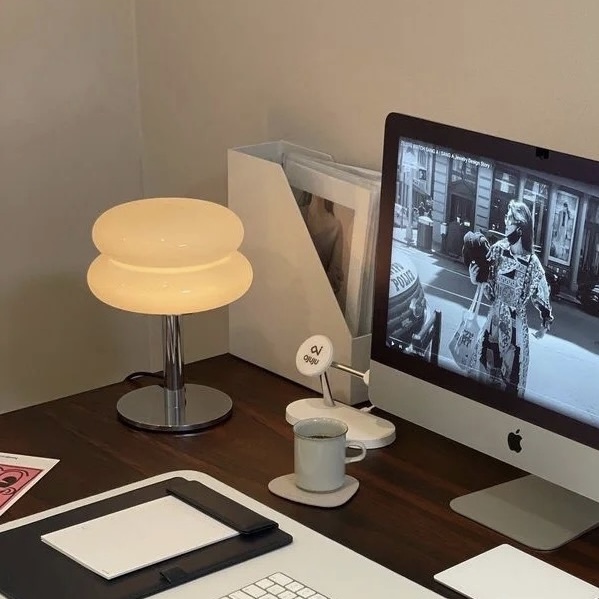 銀色的燈桿搭配圓潤簡約的玻璃燈罩