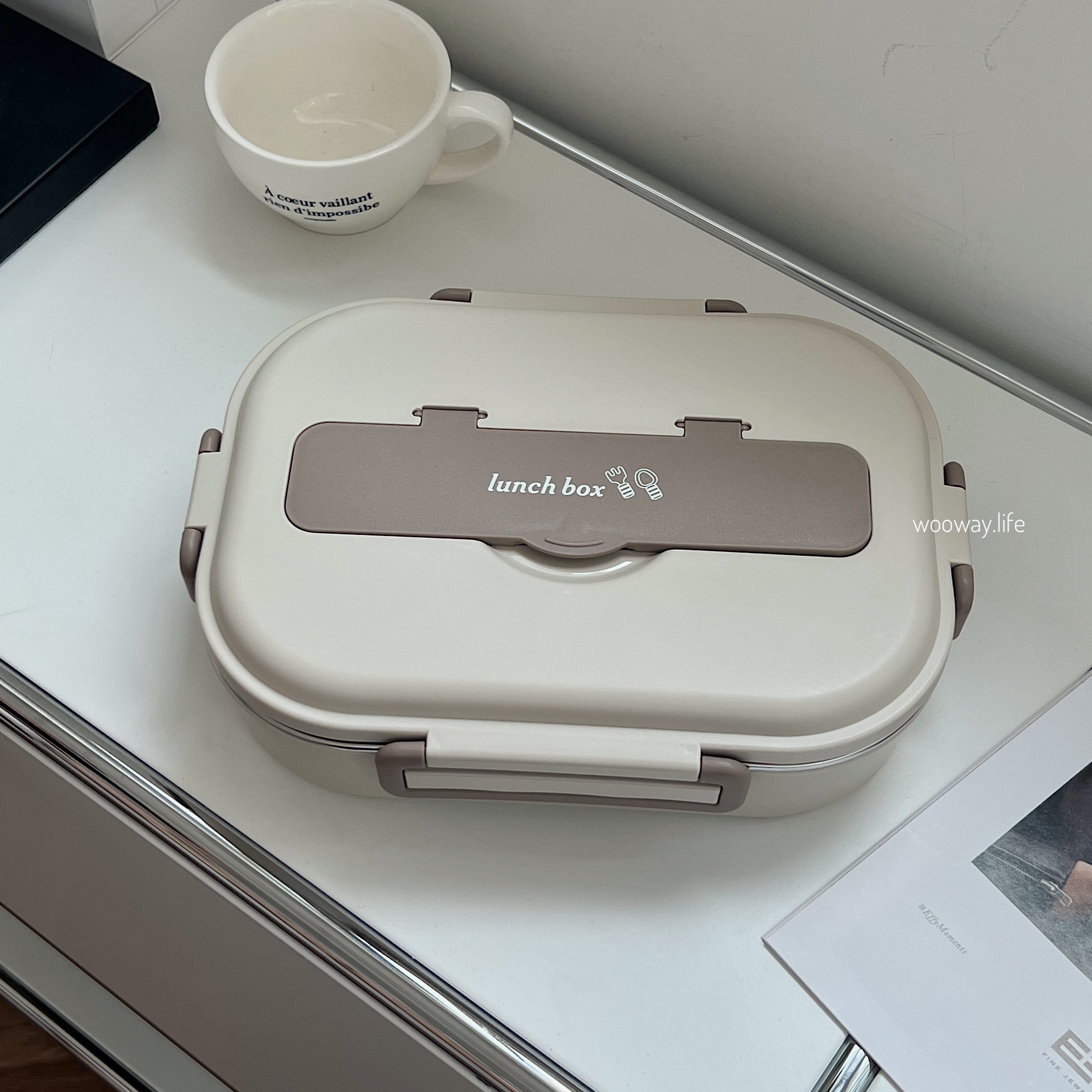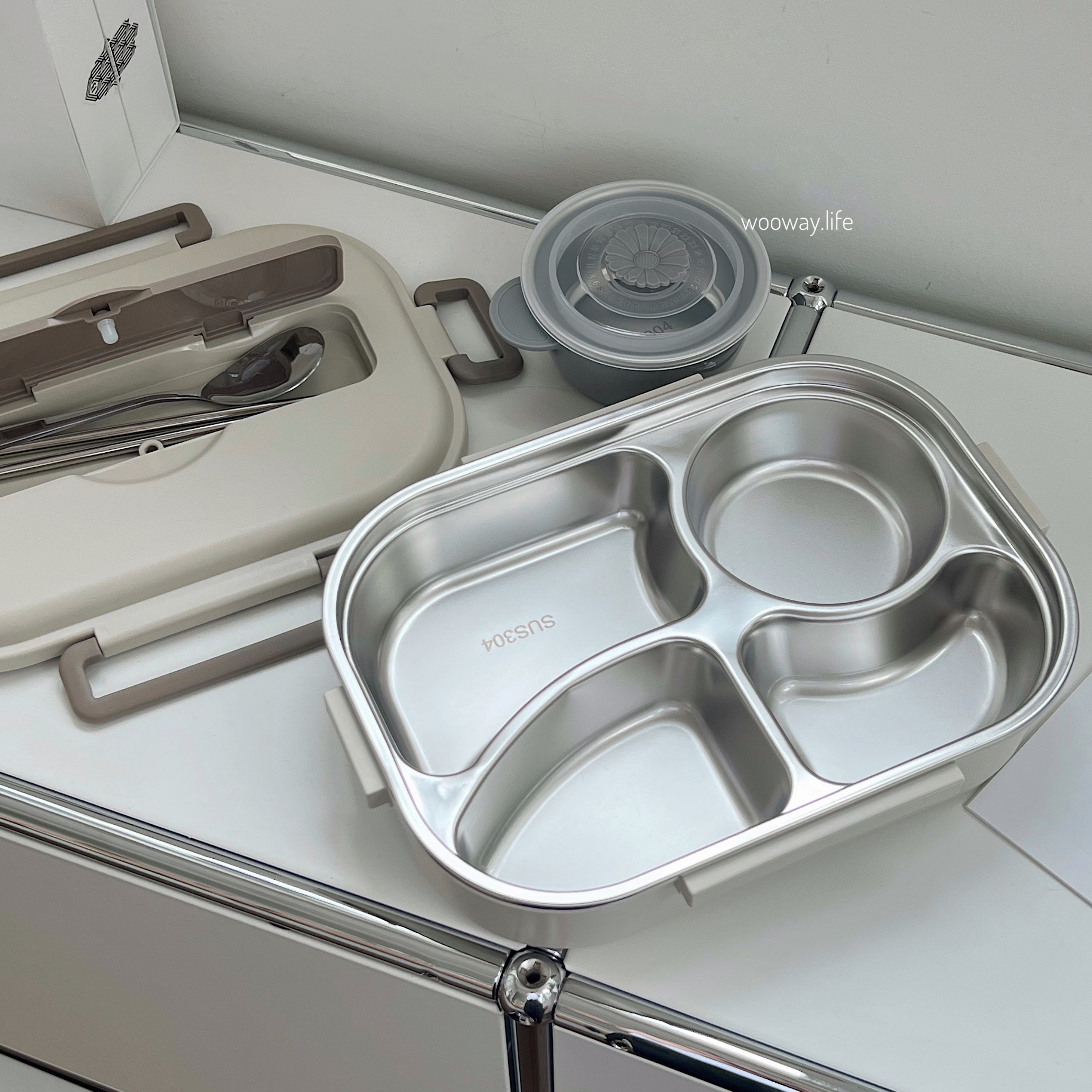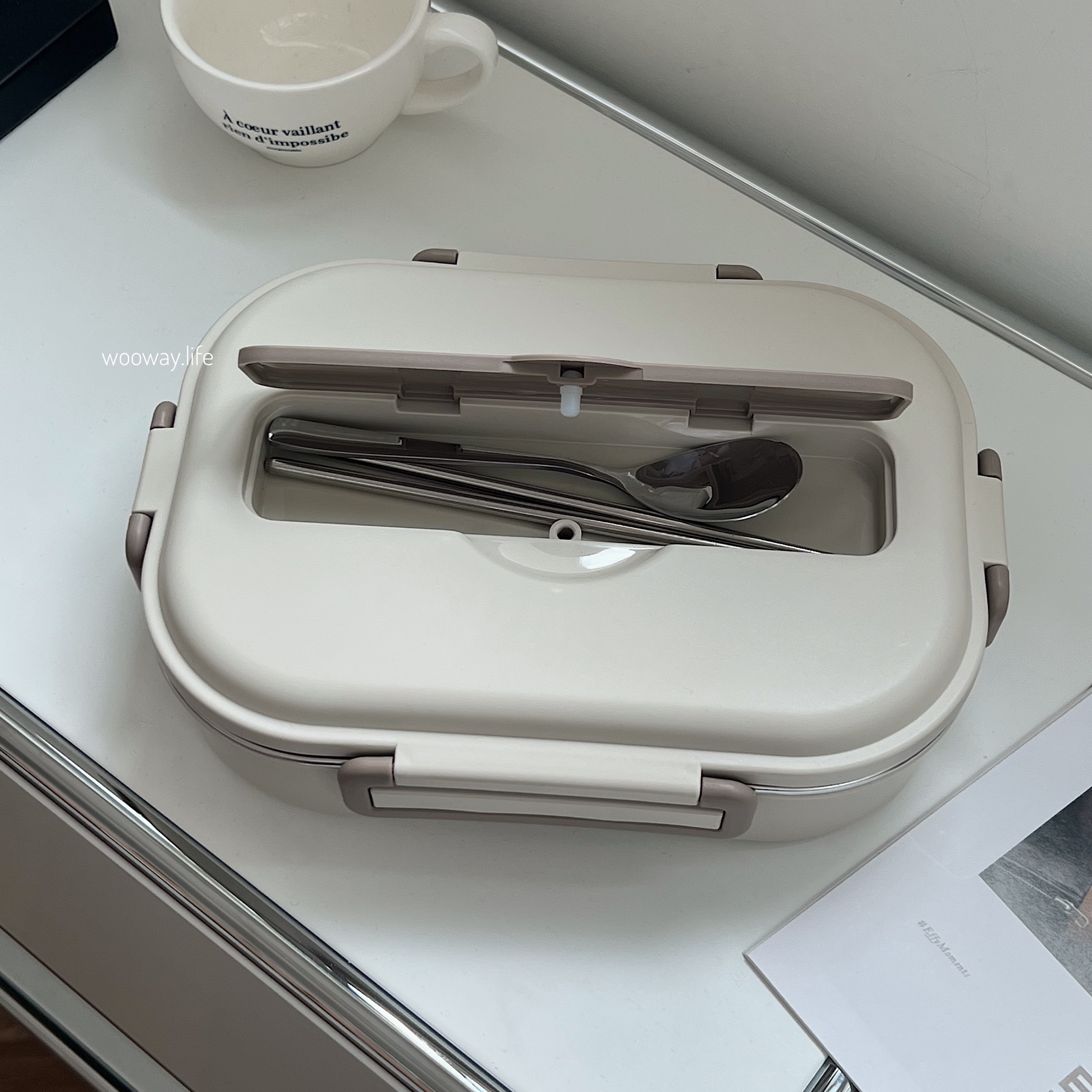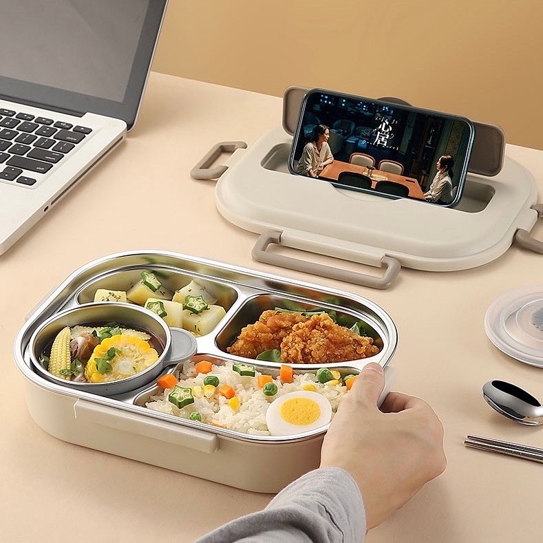 蓋子有嵌入式餐具盒 還可放手機實現吃飯追劇!